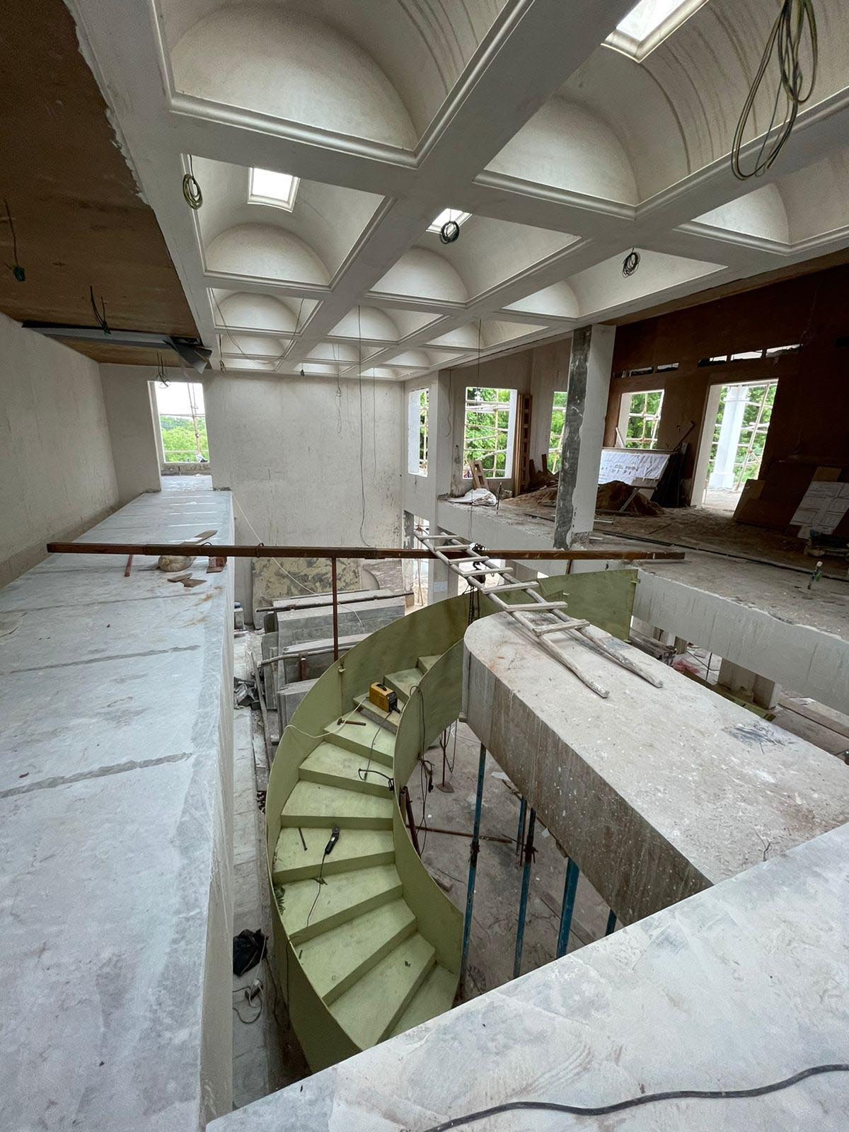 THIS PROJECT HAD A INTERESTING CHALLENGE FOR A 240 DEGREE STIARCASE ALONG WITH LONG SPAN (WITHOUT POST TENSIONING). THE ROOF ARE ALL RCC.